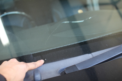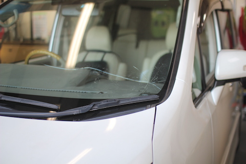 車に材料を載せて移動中に、材料が滑ってフロントガラスに直撃!!中からガラスが割れてしまいました・・・