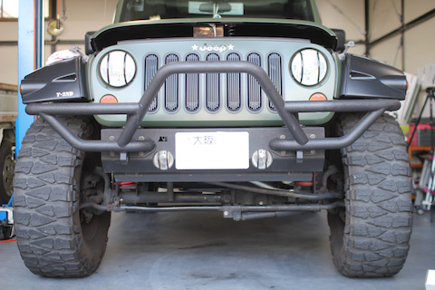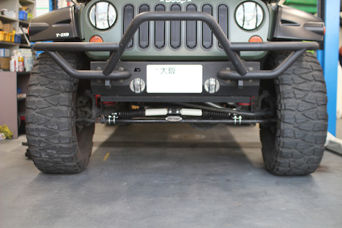 駐車場にオイル溜まりが出来てると、Jeep ラングラーのご入庫。