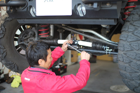 今回、純正で付いていたステアリングダンパーが寿命である事もあり、デュアルステアリングダンパーへ交換する事にしました。