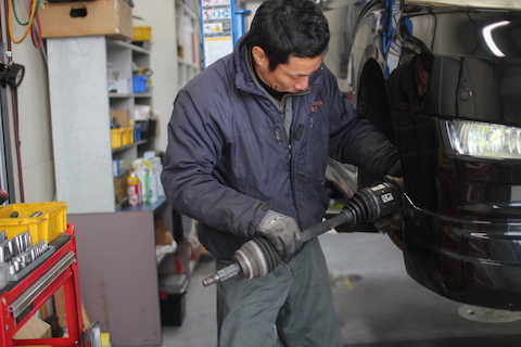大阪府寝屋川市より、アルファードの車検でご入庫。点検項目をチェックしていると、一見何も問題なさそうなドライブシャフトですが、