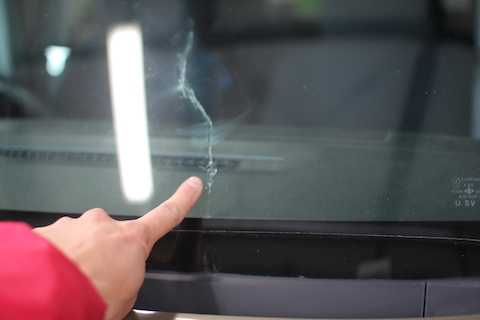 残念ながら、飛び石被害でヒビが長く伸びてしまったそうです。