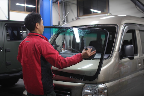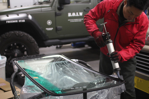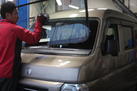 フロントガラス交換は、ガラス交換専門業者様にお願いするのが普通ですが、自分達でやる事で、お客様に費用を還元したい!