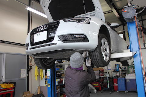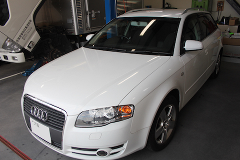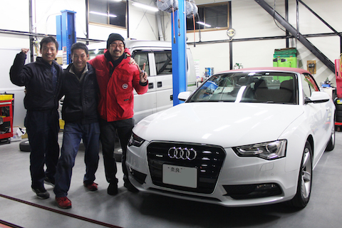 奈良県生駒市 Audi A5 カブリオレのお客様が車検でご来店。以前にも、フロントガラス修理をご利用して頂いた、リピーターのお客様です。