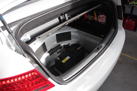 そして、バッテリー交換。スペアタイヤ下にあるのですが、このバッテリーの純正が、なんと¥73,440!
