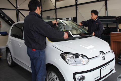 UP!の様にブレーキサポートついているフロントガラスでも、お任せ下さい!