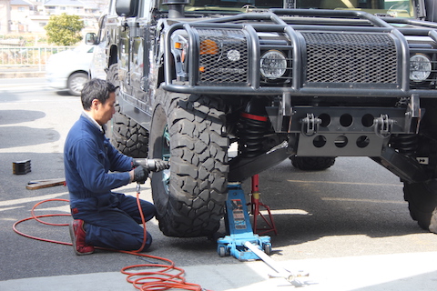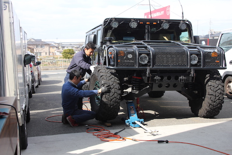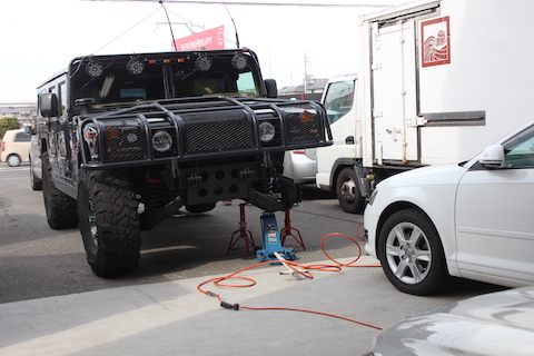 モンスターカー、ハマー H1のタイヤローテーションをご依頼頂きました。