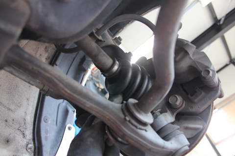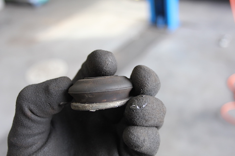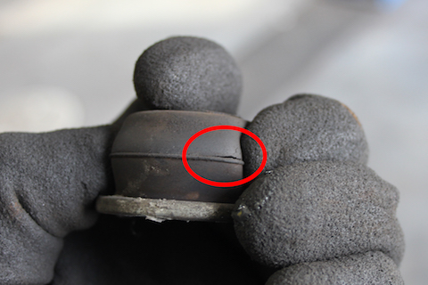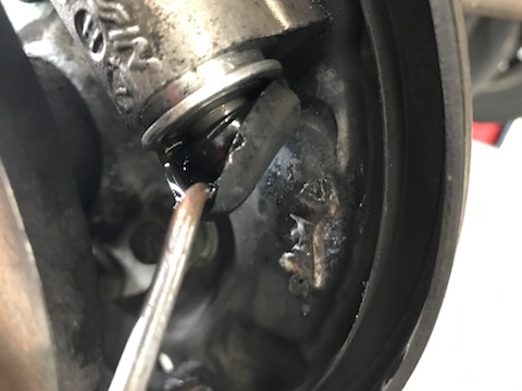ココに水が侵入して、錆びて折れてしまうと、タイヤの方向を失って操作不能になることも!!