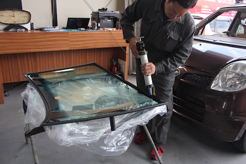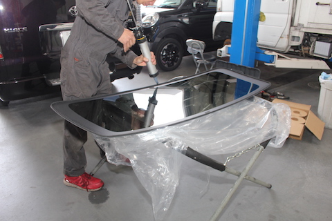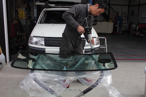 フロントガラスは、ガラスとボディが接着剤で強力にひっついています。