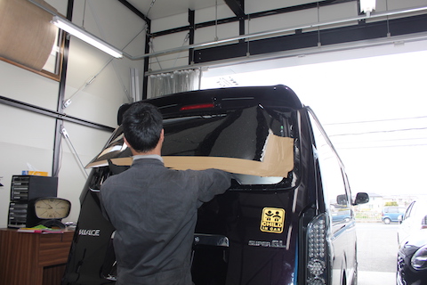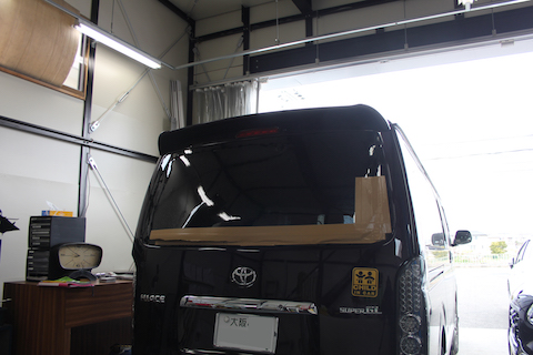 リアガラスも、優良ガラスのご用意があります。今回のハイエースは、純正より半額位の費用まですみました!