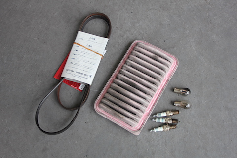 ベルト・エアエレメント・プラグなどは走行距離と時期で予備交換し、ブレーキライト球が切れていたので交換。
