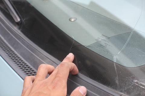 フロントガラスは、残念ながら、飛び石で傷は伸びていました。ガラスの端っこに到達すると、交換となっていまいます。