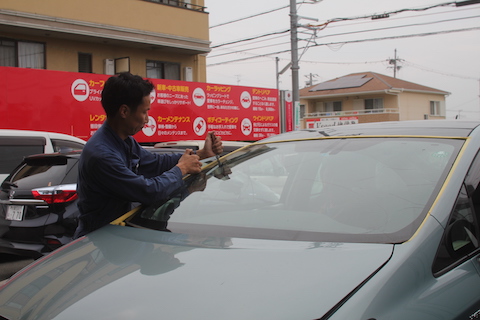 プリウスのフロントガラス交換で、大阪府羽曳野市よりご来店!