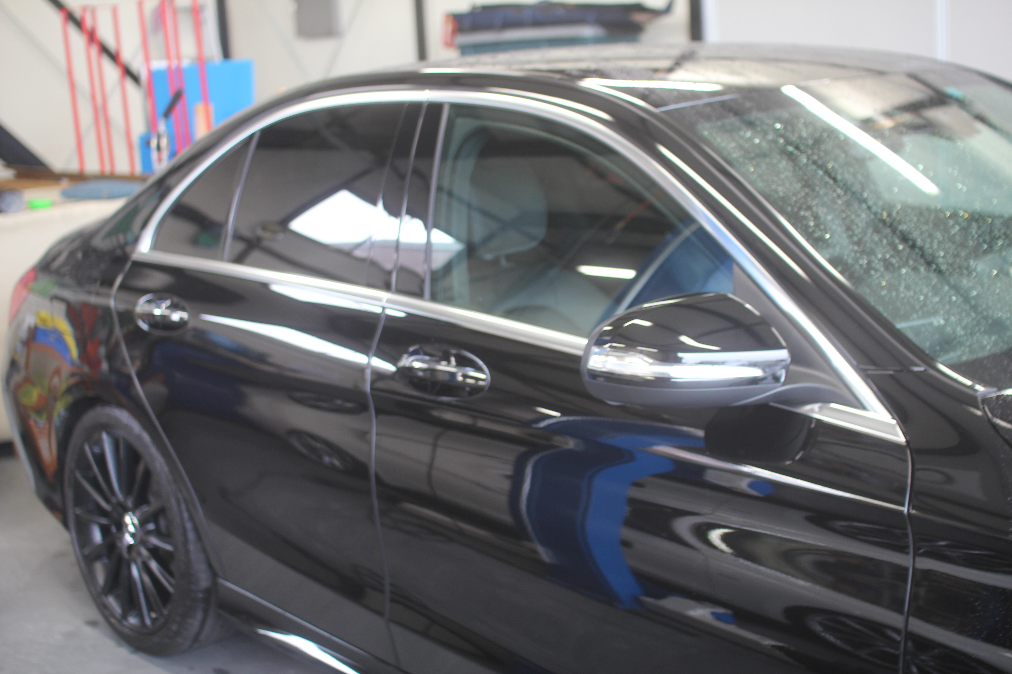 ベンツのあるある事例、メッキの水垢問題、とってもとってもまた付いて白ボケする問題も、カーラッピングで解決します!