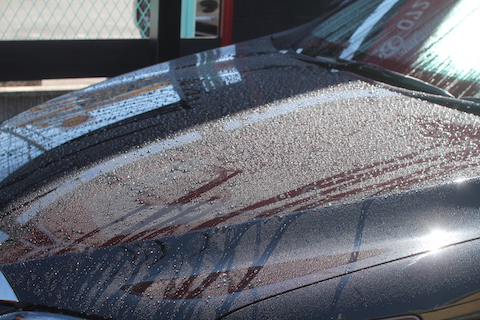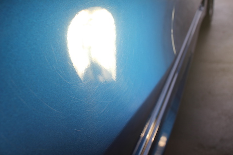 洗車などでボディに薄い線傷が付いています。これにより、塗装の色が白くぼやけてしまいます。