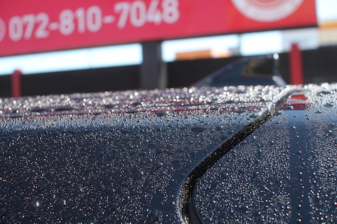 綺麗になった塗装の上に、ガラスコーティングを施工します。薄いガラス膜を形成し、塗装の艶を出します。そして、硬いプロテクションとなり、塗装を守るのと、汚れの付着がしにくく、水洗いで綺麗に除去できます。