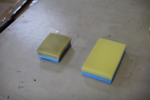 左のスポンジは、メンテナンス使用した物。洗車で取れなかった汚れがしっかり取れました。