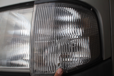 左コーナーのウインカーレンズが割れていました。