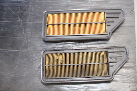 エンジンに空気を取り込む部分のエアフィルターの交換。