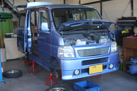 大阪府茨木市より、バネットの車検でご入庫。