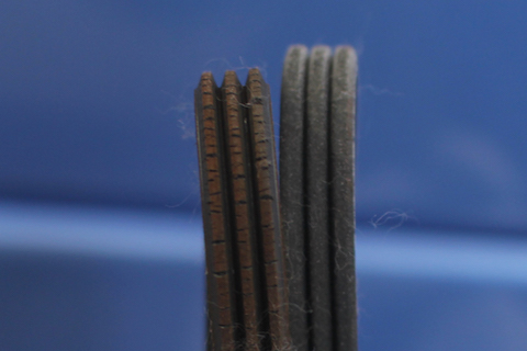 ベルトの交換。左はヒビだらけで、今にでも切れそうです。