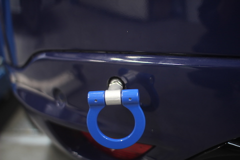 シャーシダイナモ測定で、愛車のパワーを調べたいけど、リアにけん引フックが付けれないんで測定出来ないとご来店。
