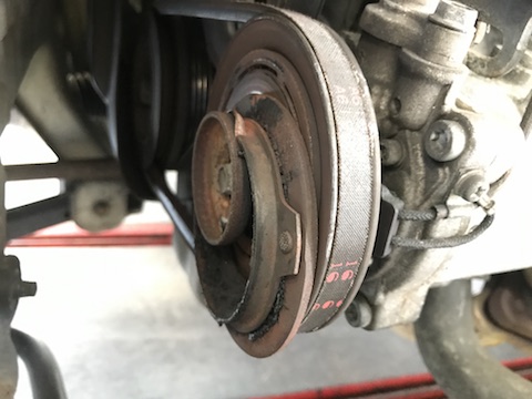 エアコンシステムの心臓部である、コンプレッサーという部品が壊れていました。