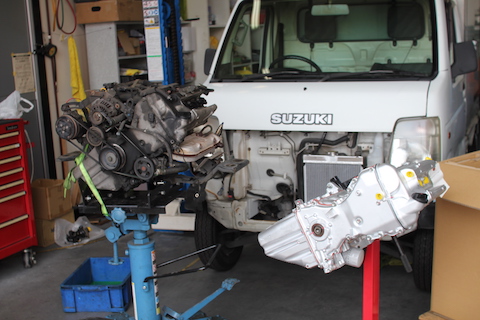 大阪府茨木市より、キャリィのエンジン取り替えでご入庫。オーバーヒートでエンジンに負担がかかり、壊れてしまいました。
