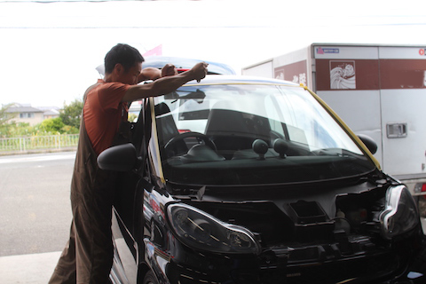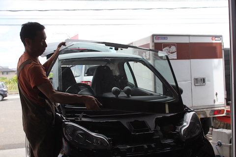 奈良県生駒市より、スマートのフロントガラス交換でご入庫。