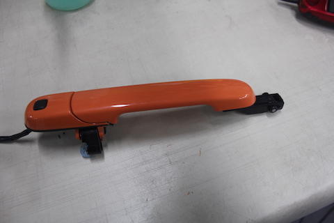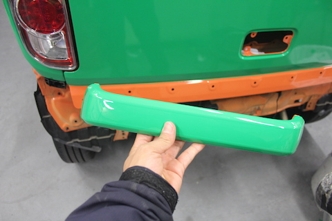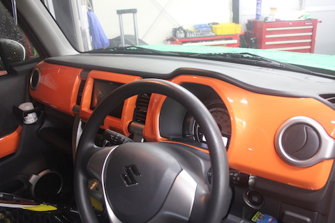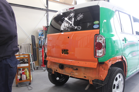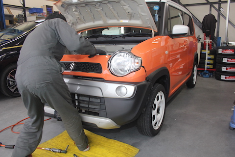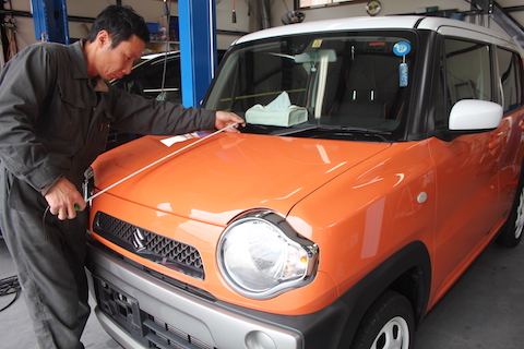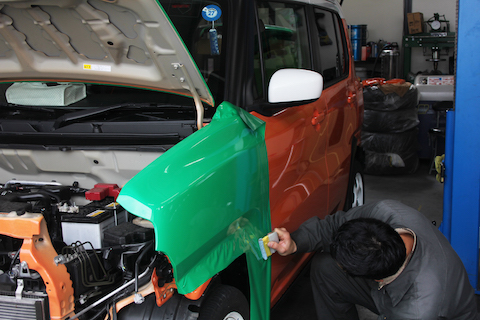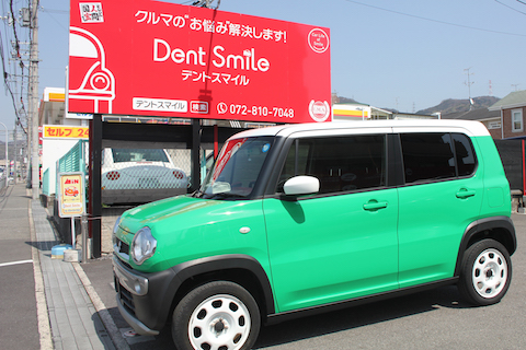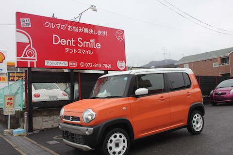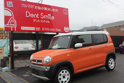 スズキのハスラー、ホントは緑色が欲しかったけど、オレンジ色で我慢して乗っていたお客様。3年経ってデントスマイルと出会い、愛車がお気に入りの色に大変身!!!