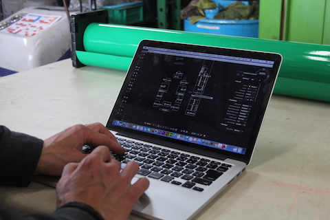 大きなカッティングシートのような材料、曲面はシワができるので、