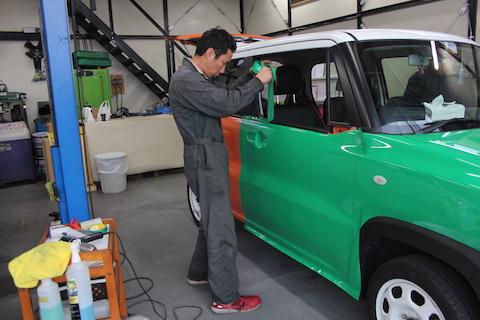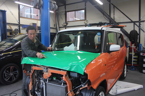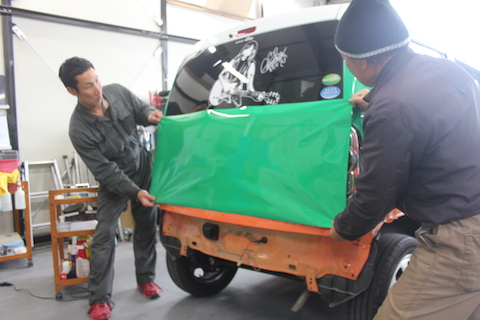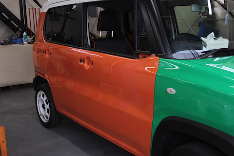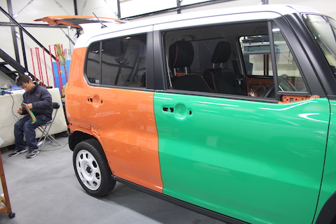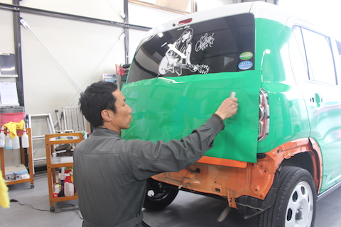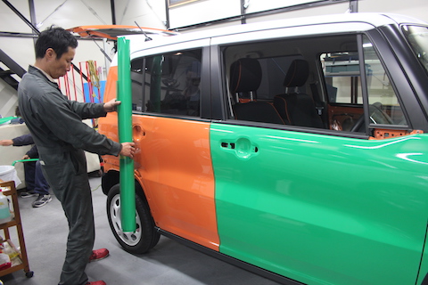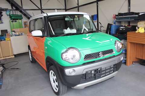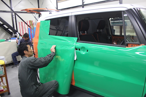 ハスラーの全面カーラッピング。昨日まで鉄板部分の施工をご紹介しました。