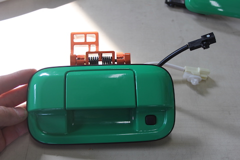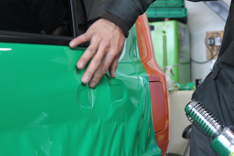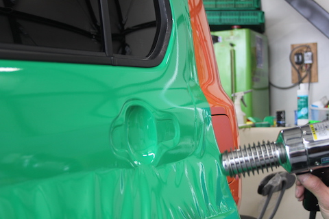 カーラッピングシートは、プラスティック部分にもしっかり貼り付きます。