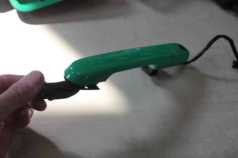 いらない部分を、糸を使ってカットするので、ボディに傷はつきません。