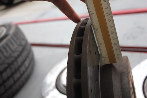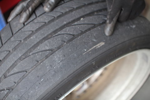 内側が大きく磨耗し、スリップサインが出ていたので、タイヤ交換させてもらいました。