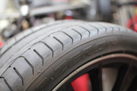 ご用意したのは、ポルシェ認定タイヤ、N2マークが入ったピレリ。認定タイヤでないと、ポルシェの保証が効きません。
