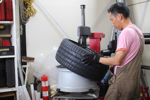 21インチホイールと大きく、35偏平と薄いので、慎重に作業。