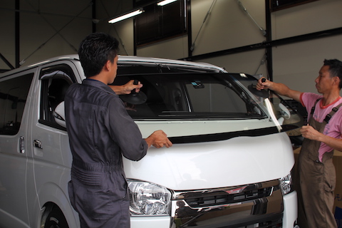 しかも、断熱効果も付いて、違法改造ではなく、車検対応ガラスです。中からは透明でしっかりみえます。
