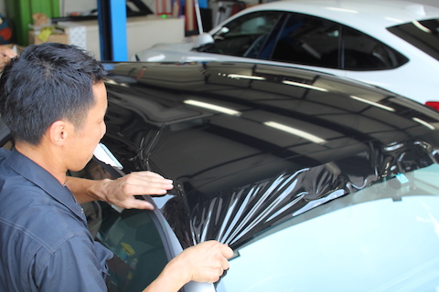 カーラッピングシートという、ステッカーを屋根に貼り付けます。