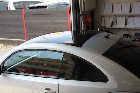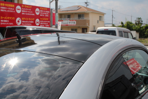 リアゲート部分のシルバーも施工し、全面ルーフをグロスブラックに!