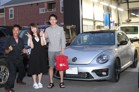 大阪府富田林市より、フォルクスワーゲン ビートルのお客様、カーラッピングで喜びのピース!