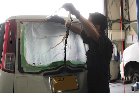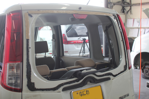 粉々に割れたリアガラス、綺麗に直ってスッキリですね!!