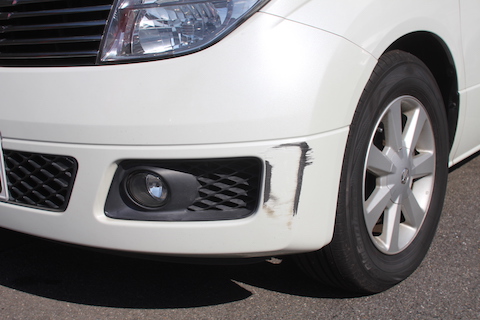 ドアにヘコミがあるし、フロントバンパーには傷・・・