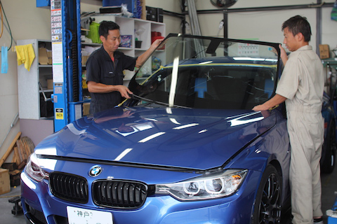 兵庫県西宮市より、BMW 320iのお客様のフロントガラス交換で、大変喜んで頂けました!