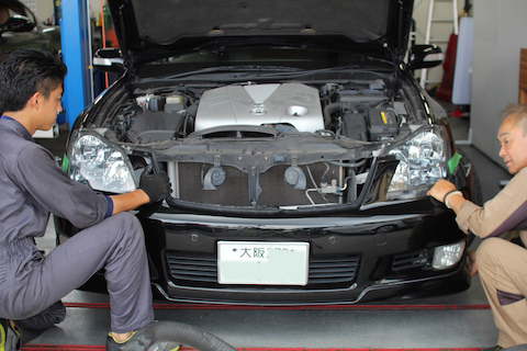 京都府京都市より、フーガのお客様の車検でご入庫。