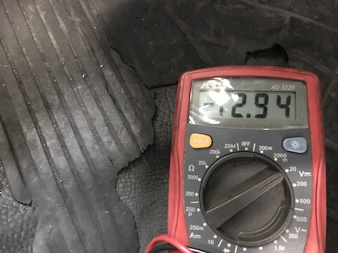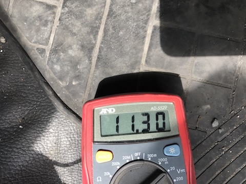 原因は、ダイナモという発電機の故障でした。バッテリーは12V以上必要なのですが、発電機が11.3Vと弱い力しか出ていなかったので、バッテリーの電力を使い果たしていました。