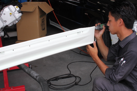 合わない部分を、削ったり、穴を開けたりと、現車に合わせて加工し、