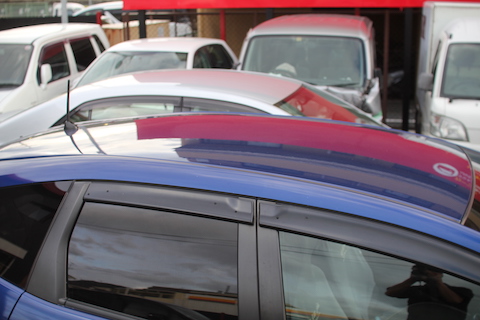 経年劣化により、塗装の色がとんでしまっています。駐車場の屋根の有無、西日の当たり具合などで、塗装面が痛んでいきます。
