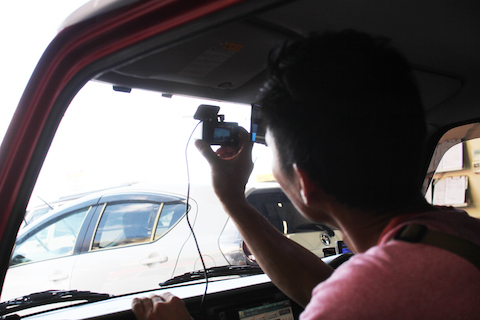 そこそこ大きなカメラですが、ルームミラーの裏に取付るので、ドライバーの視界の邪魔にはなりません。