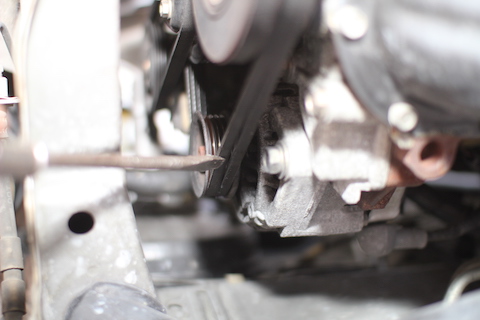 エアコンかけると、キュルキュル異音するとの事で、見て見ると、ベルトが切れてる??