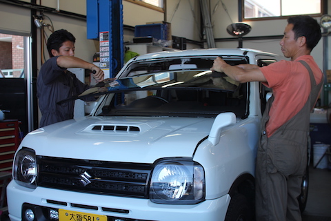 フロントガラスは、純正ガラスより1/3の価格の優良ガラス、付加価値が付いて、価格も安い、断熱や熱反射ガラスがあります。